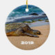 A unique gift or keepsake for the Hawaiian traveler. The view of Waikiki and Honolulu from iconic Diamond Head Crater. And the Hawaiian Green Sea Turtle sleeping o n Laniakea Beach on the reverse. The Island name and year date is customizable.