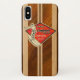 Red and koa colorway. These original Hawaiian designs are vividly printed with the highest quality printing technology on super durable, impact-resistant Lexan cases.  Located on Oahu's North Shore in Hawaii, it has been said that watching the waves at Waimea Bay is like watching Mother Nature at her best.  At least that is what the experienced surfers who challenge her break have said. We used koa wood and added stripes and our North Shore Longboard Surfing Club Logo with vintage hibiscus flowers. This style is available for various Apple iPhones, iPads and other smart phones.