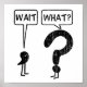 Wait, What. Illustration of a comma and a question mark. Funny idiom exclaimed when someone suddenly realises something isn't right. The comma waits, the question mark asks. Get it?