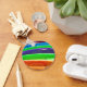 These are a durable metal and the colors are vibrant. One of the clasp came broken but received a new one quickly. Customer service was responsive and quick to resolve the issue. They are bigger than I thought but still work for my wedding. I am satisfied with the print quality and surprised at how vibrant the colors are.
