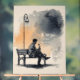 This design beautifully portrays the quiet pain and hope of one-sided love. The man with a rose, sitting under the streetlamp, symbolises unwavering feelings and the courage to love without expecting anything in return. A heart-touching artwork for lovers of emotional and meaningful art.