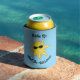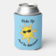 Cute fun can cooler of a cool happy yellow sun wearing dark shades and a big cheeky grin. Above and below the sun are the words "Wake Up And Be Awesome" in black text. This funny happy sticker will put a smile on anyone's face.