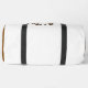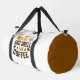 This bright white duffle bag features a charming coffee-themed graphic, perfect for early risers and coffee lovers. The playful text "WAKE UP AND SMELL THE COFFEE" is displayed alongside a coffee cup and scattered coffee beans. This bag is ideal for gym, travel, or as a thoughtful gift for anyone who appreciates their daily brew. Edit colour of the bag caps and body in the Design tool to your favored colours.