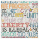 Originally drawn in ink, political typography pattern including wake up, stand up, unity, vote, power to the people, rule of law, no kings, liberty, no human is illegal, no justice, no peace, due process, protest and democracy.