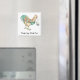 Refridgerator magnet featuring a colourful hand-drawn illustration of a rooster ready to help you wake up in the morning with a hot cup of tea! Artwork: Pen and Ink on paper. Copyright Dominic A. White
