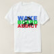 A T-Shirt for the wakeboard addict. It features three black silhouettes of wakeboarders with the text "wake board addict" in blue, green, and red letters."
