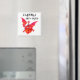 Square, white fridge magnet with a handpainted paper collage design of red dragon and the slogan 'Cymru am Byth'. See also matching posters, mugs, mousepads, greeting cards, T-shirts etc