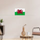 The Welsh national flag has a white and green background with a red dragon in the centre. The dragon is the Red Dragon of Cadwaladr, King of Gwynedd, and is known as Y Ddraig Goch in Welsh. Note that different renderings of the dragon may be used. The flag was officially adopted in 1959.