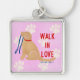 Walk in Love Golden Retriever Dog Pink Magnet Key Ring