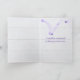 White stationery and envelope with purple flowers and ribbon on white wood background for walk me down the aisle for friend.