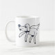 A dog being walked by a cartoon man....the man you can find on another mug!