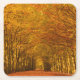 Coaster with a walking path through the golden beech trees in a forest in autumn colours in fall season in the Netherlands.