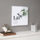 This wall clock has a simple design that packs a wallop. The circle of numbers is small and unobtrusive so the "life" quote takes center stage. The quote reads "Life is not about waiting for the storm to pass, it's about learning to dance in the rain. Which seems to be a great bit of advice in today's world. The top corner has a printed image of a posy of hand painted violets. The white violets on the white background make a subtle eye-catching statement. The simple design makes it a perfect fit for any room in your home.