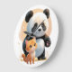 This charming design features an adorable orange tabby cat with bright, curious eyes, fluffy whiskers, and a tiny pink nose, standing playfully behind a gentle giant panda bear with soft black-and-white fur and a sweet smile. Set against a warm creamy white background with soft peach and golden light, this delicate illustration evokes innocence, cuteness, and serenity. Perfect for cat and panda lovers, this design is ideal for t-shirts, mugs, tote bags, and more. Add a touch of playful friendship to your day with this modern yet timeless artwork!