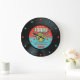 Wall Clock, 25.4 cm Round Black Wooden Frame