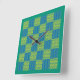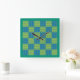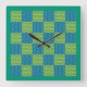 Wall Clock, Emerald and Blue Patchwork Pattern Square Wall Clock