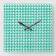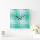 Wall Clock, Emerald Green Dogtooth Check Square Wall Clock