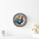 The clock did not take as long to arrive as I thought it might and was extremely well packaged. I didn't do the measurements so I didn't realize it is a little smaller than the average clock but that does not matter (just make sure you check if that's important to you).It is really nifty! It seems very solid and well made not flimsy at all. It has been going well and has kept good time in its few weeks on my wall. Nice product. Gets noticed too! Nicer in real life than the picture but true to the picture