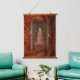 The polyester fabric displayed many wrinkles and several sharp creases throughout. At the bottom of the tapestry, I noticed a bulge in the fabric because it was not pulled tight enough before being connected to the wooden boards. It took me over an hour to spay water on the tapestry before putting it on an ironing board where I used a warm iron over a polyester cloth to remove the wrinkles and creases in the material. I was able to get out the wrinkles and creases that made that tapestry look as beautiful as its picture.