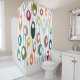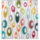 This shower curtain has a mid-century modern design of ovals in retro colours on curvy black lines.