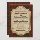 Wallace tartan plaid background with rustic paper foreground and Scottish thistle accents. Wallace clan badge at the top, and customise with the information for your special day!