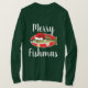A walleye wears a Santa hat and the text reads "Merry Fishmas" on this fun "ugly sweater."