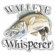 Few things compare to catching a powerful, toothy and delicious walleye. Yum. Full colour detailed image of a walleye with the text Walleye Whisperer.