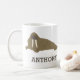 Create the perfect personalised gift for someone who loves walruses and other Arctic animals. This coffee mug features a realistic style illustration of a walrus in brown with a spot below for adding a name in dark brown lettering. The graphic and text appear on both sides of the mug.