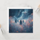 Four shadowed figures walk through glowing mist, surrounded by swirling stars and cosmic light.