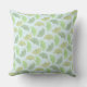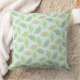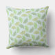 A pilllow featuring a pastel green vector pattern illustration of ginkgo leaves in varying shades of green on a light blue background.