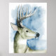 Wandering Stag II by Grace Popp. Features a beautiful watercolor stag with a soft blue background.