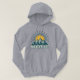 A golden sun rises over snowcapped teal mountain peaks in this retro inspired Wanderlust art. Made for adventurers, hikers, nature lovers and anyone who feels most alive when exploring the great outdoors. This hoodie sweatshirt is a great way to show off your wanderlust while you explore, or while daydreaming about your next journey. | Vivid printing is recommended for non-white garments.