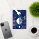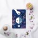 Beautifully illustrated celestial "thinking of you" card with last quarter moon. For spiritual seekers who love to connect with lunar energy. Silver foil on delicate details. Send love, make a kind heart-print in this world. You can adjust or delete all texts. Original artwork by Marketa Stengl.