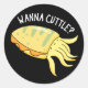 Wanna Cuttle Funny Cuttlefish Pun Dark BG Classic Round Sticker