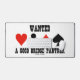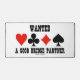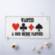 Showcase your wry side whenever you play bridge in bridge tournaments with this desk mat featuring the four card suits along with the bridge saying "Wanted - A Good Bridge Partner". Make others do a double-take at what you mean when you search for a partner at the partnership desk the next time you play in a bridge tournament. Tongue-in-cheek duplicate bridge desk mat for any avid bridge player.