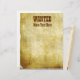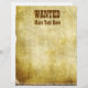 Here's a unique fun, old vintage western style paper letterhead that you can easily add any name or any custom text below the word "WANTED" in brown, big text. You can easily change font style, font colour, even change the text entirely. Or delete text completely to hand write your later. Great for funny flyers, pranks, jokes, etc. to hand out, display, or post and hang up.