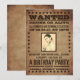 Wanted Poster, Classic Western Birthday Invitation. This Western style invitation can also be customised for children by simply changing the words "Drunk or Alive" to something more suitable.