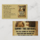 Reproduction of a vintage wanted poster with two mug shots of a squirrel and a $50,000 reward for his capture. The type font is in the style of the old west and the poster looks like it's printed on old paper that has turned brown with age. The poster tells of Sammy the Squirrel's crimes of stealing bird seed, digging up flower beds, and taunting the dog and describes Sammy's big whiskers, frisky tail, and fast-moving ways. This humourous tongue-in-cheek wanted poster would be perfect for any squirrel lovers, or anybody who has had problems with squirrels and their antics.