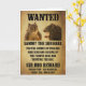 Greeting card with a reproduction of a vintage wanted poster with two mug shots of a squirrel and a $50,000 reward for his capture. The type font is in the style of the old west and the poster looks like it's printed on old paper that has turned brown with age. The poster tells of Sammy the Squirrel's crimes of stealing bird seed, digging up flower beds, and taunting the dog and describes Sammy's big whiskers, frisky tail, and fast-moving ways. This humourous tongue-in-cheek wanted poster greeting card would be perfect for any squirrel lovers, or anybody who has had problems with squirrels and their antics. Inside text is customisable.