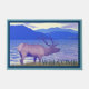 An elk (Cervus canadensis), known as a wapiti to Native Americans, on the shore of Lake Pend Oreille in the Idaho panhandle. Text reading "WELCOME" also appears.