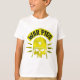 The t-shirt feels and looks great quality, a good thick cotton. It will be a little big for my son, but that means he will be able to wear it and not out grow it too soon. The print was as described on the order when personalised. True size, shape and colour T-shirt- thanks.