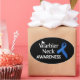 Warbler Neck affects birders each spring season, coinciding with migration and heightened birdwatching activities. This original design features the cerulean blue warbler neck awareness ribbon, which is partially transformed into a feather on one side. Show your support for warbler neck awareness with this original design which also features a warbler (looking up, of course) in silhouette.