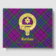 Clan Wardlaw crest badge surrounded by a strap and buckle over tartan background. Custom front, back and spine text.