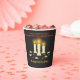 Celebrate Thanksgiving in style with our "Warm Candles Colourful Leaves Thanksgiving" paper cups. These cups feature a mesmerising design of three gently glowing candles amidst a scatter of multicolored autumn leaves. The contrasting dark background amplifies the luminosity of the candles and the vividness of the leaves, making it an eye-catching piece at any festive gathering. Whether you're serving a warm apple cider or a cool beverage, these cups will add a touch of sophistication and warmth to your event.