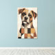 A warm geometric mosaic portrait of a boxer in earthy browns, cream and tan. Patchwork Boxer combines playful character with sculptural tile rhythm, bringing personality to modern interiors.