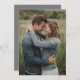This invitation features a warm and intimate design of two individuals embracing in a natural setting, surrounded by tall grasses and soft greenery. The color palette includes earthy tones with shades of green and beige, complemented by the medium blue denim jackets worn by the figures. The photographic style captures a realistic and tender moment, evoking feelings of happiness and connection. Perfect for celebrating love and togetherness, this design is ideal for weddings or romantic events, offering a serene and heartfelt aesthetic.