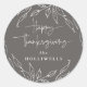 Warm Grey Leaf Motif Personalised Thanksgiving Classic Round Sticker