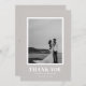 A modern wedding thank you card with a warm grey background and bold white typography. Clean and minimalist in style, this design highlights your wedding photo while keeping the overall look elegant and timeless.