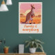 A gentle kangaroo with a smiling joey in her pouch stands against a peach‑pink outback sunset, paired with the heartfelt hand‑lettered message “Family is everything” for cosy nursery and family room decor. Soft warm tones, textured illustration, and clear theme keywords enhance emotional appeal and search visibility while following Zazzle metadata guidelines.
