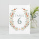 Warm orange floral wreath wedding table numbers